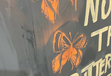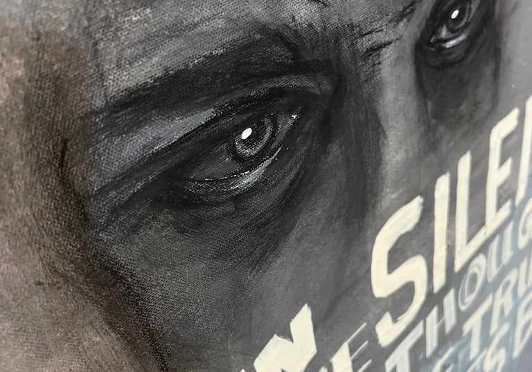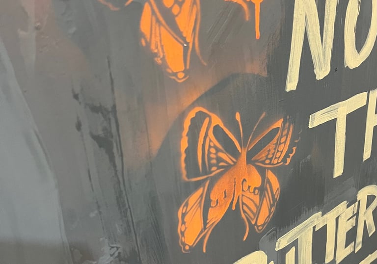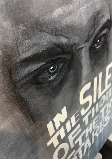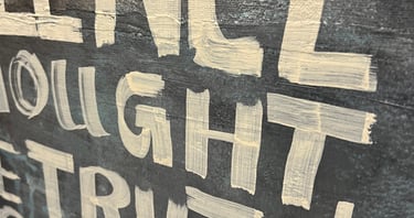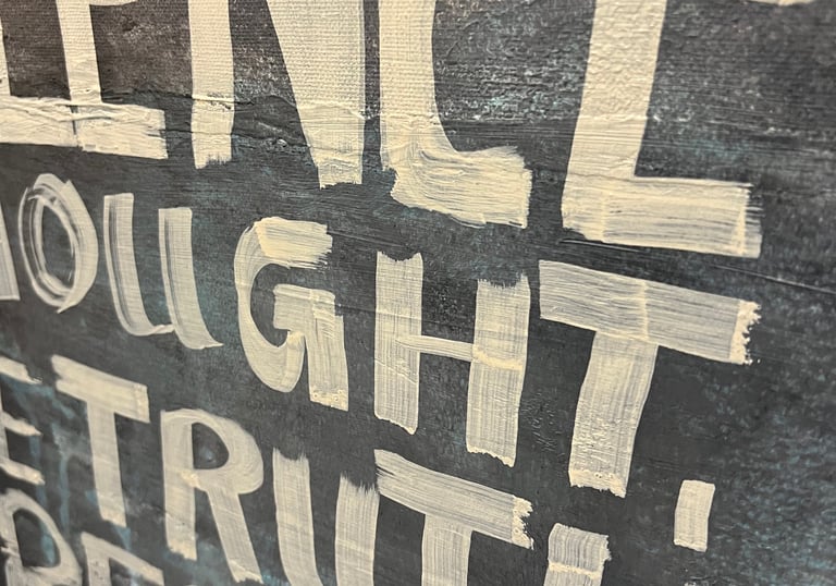 Acrylfarbe auf Leinwand | Figuration mit Kohlekreide | Schrift mit Acrylmarker